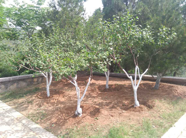 (3)修剪:根据植物的生理特性及观赏性,对修剪技术人员有针对性的进行修剪前培训,对法桐、紫叶李、紫荆、百日红等进行了全面修剪,对球类、灌木定期修剪,开花植物花后修剪,及时清理苗木枯死枝。对冷季型草坪实施疏草、打孔、定期修剪等工作,对白三叶进行了枯草清理。